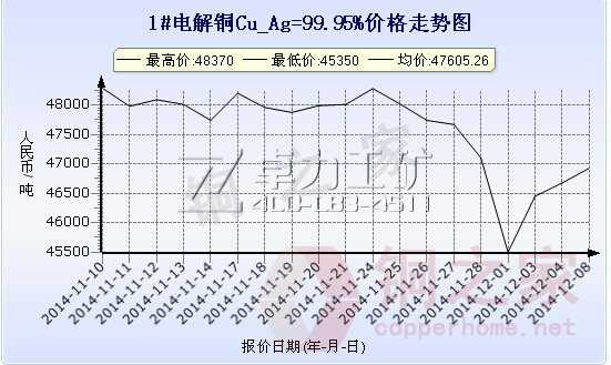 上海現貨銅價走勢圖12月8日